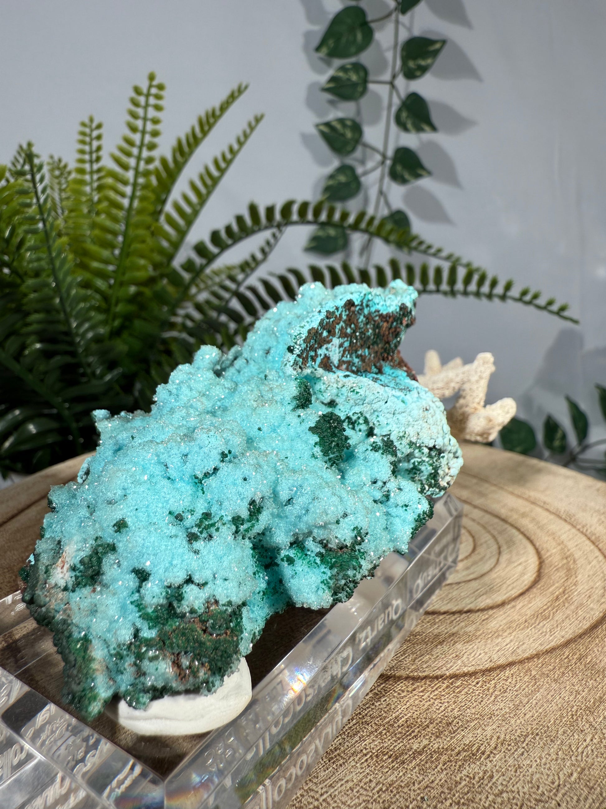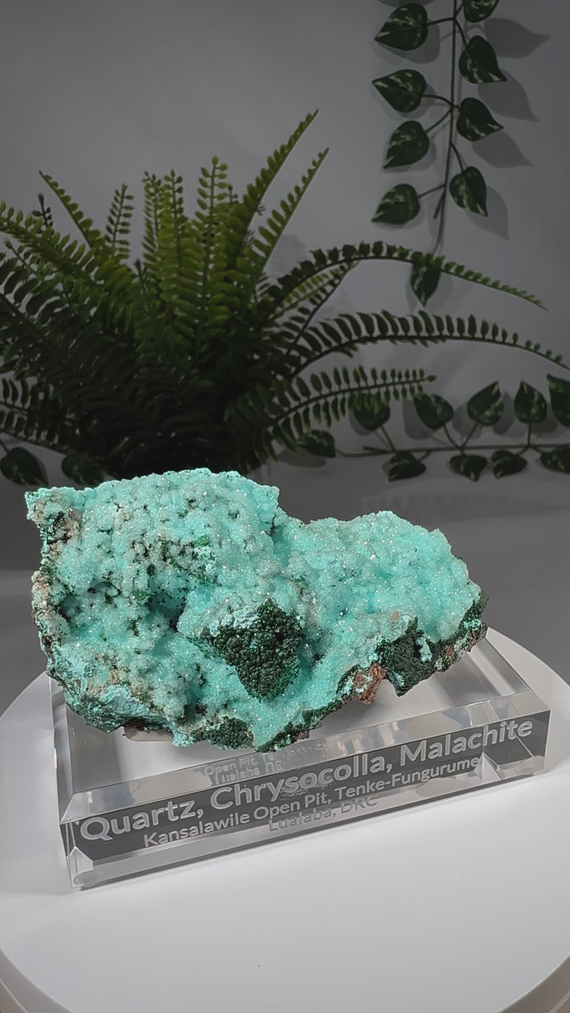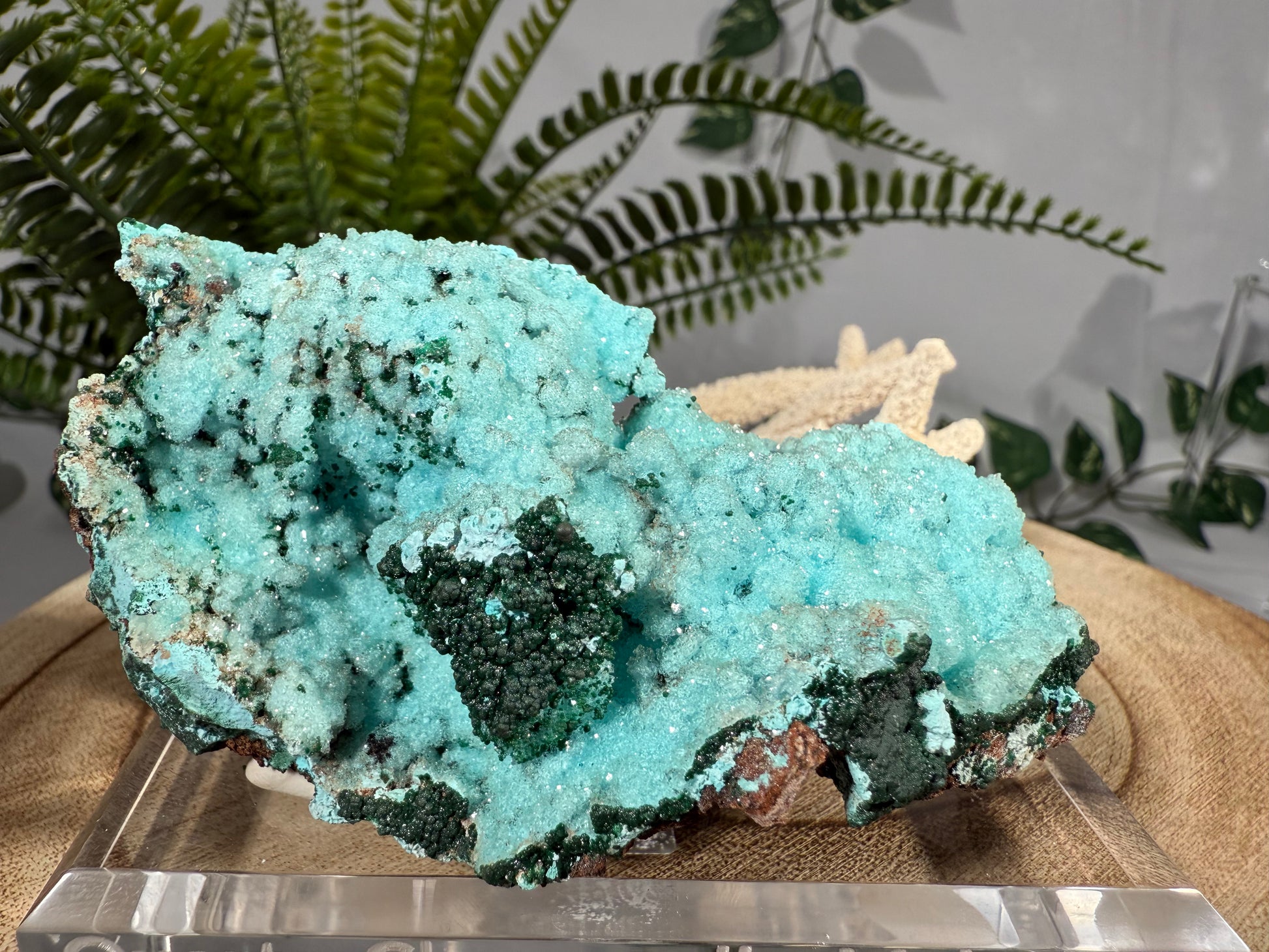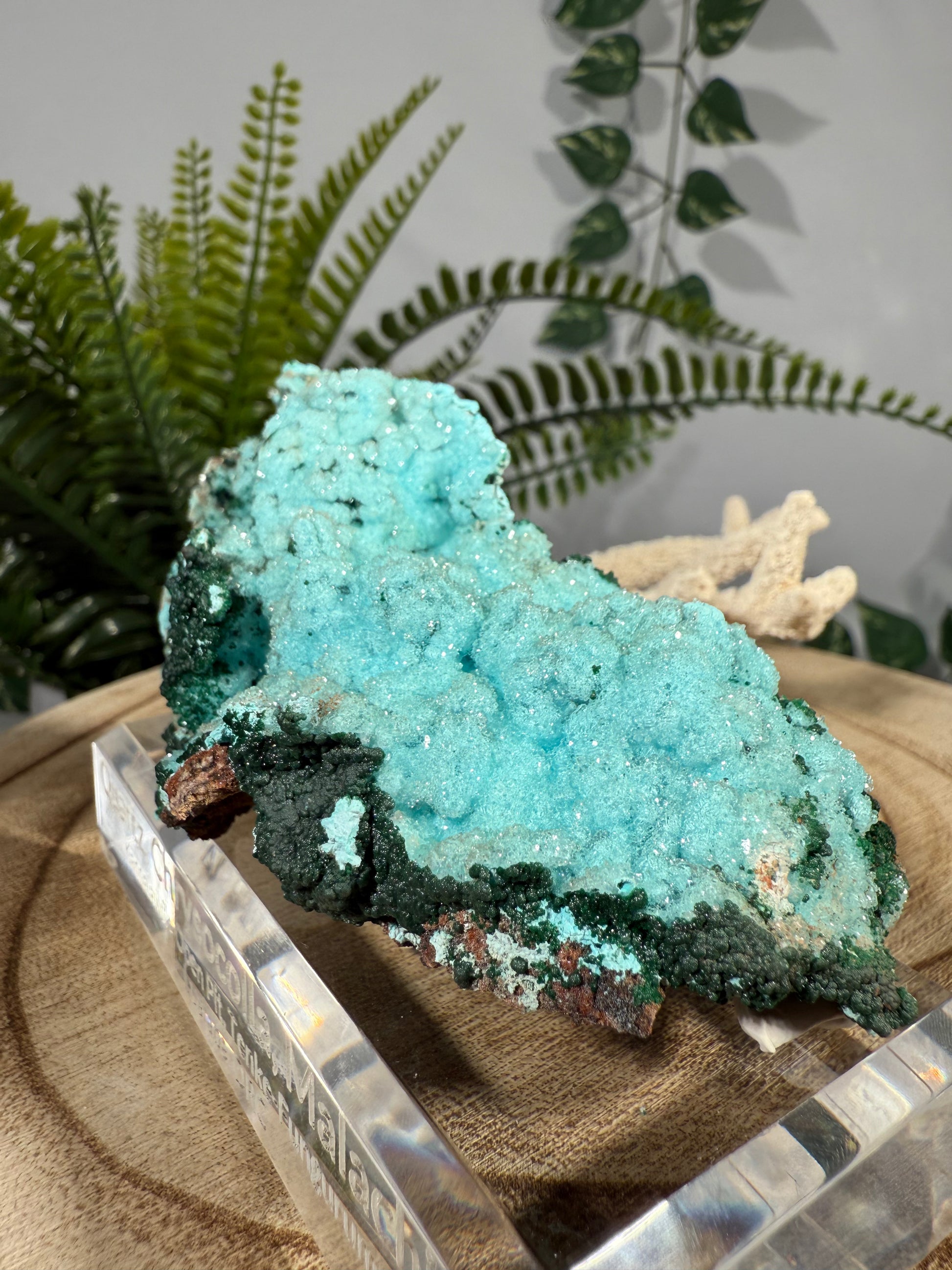 Sehr schöne Stufe mit einer tollen Farbe für jede Sammlung. Das Stück sitzt auf einem gravierten Acrylsockel.