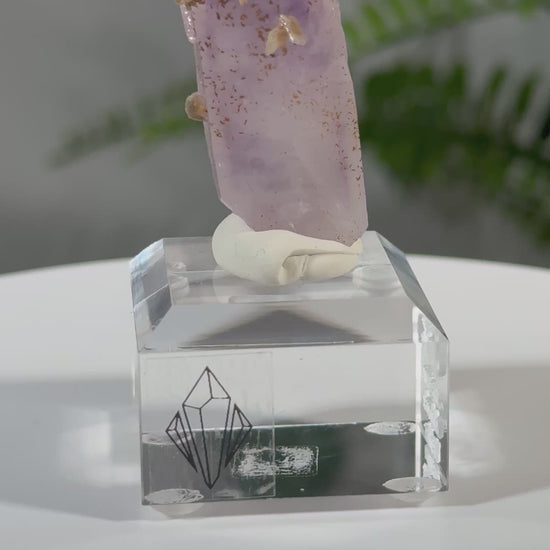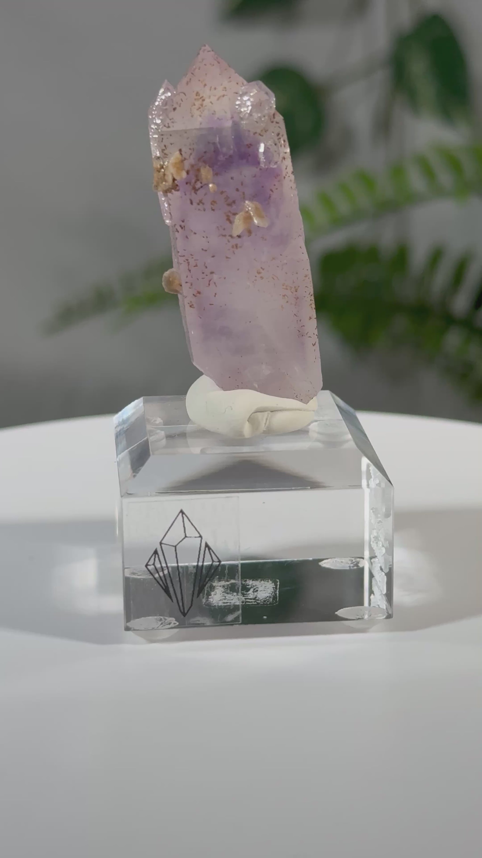 Der Kristall sitzt auf einem Acrylsockel mit Gravur und ist eine sehr schöne Stufe.