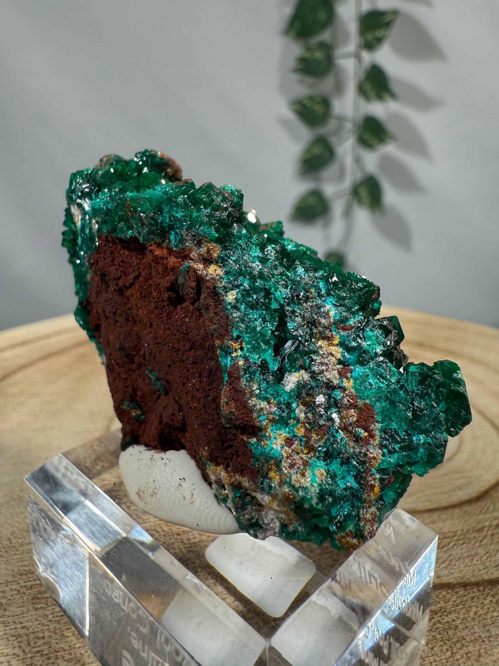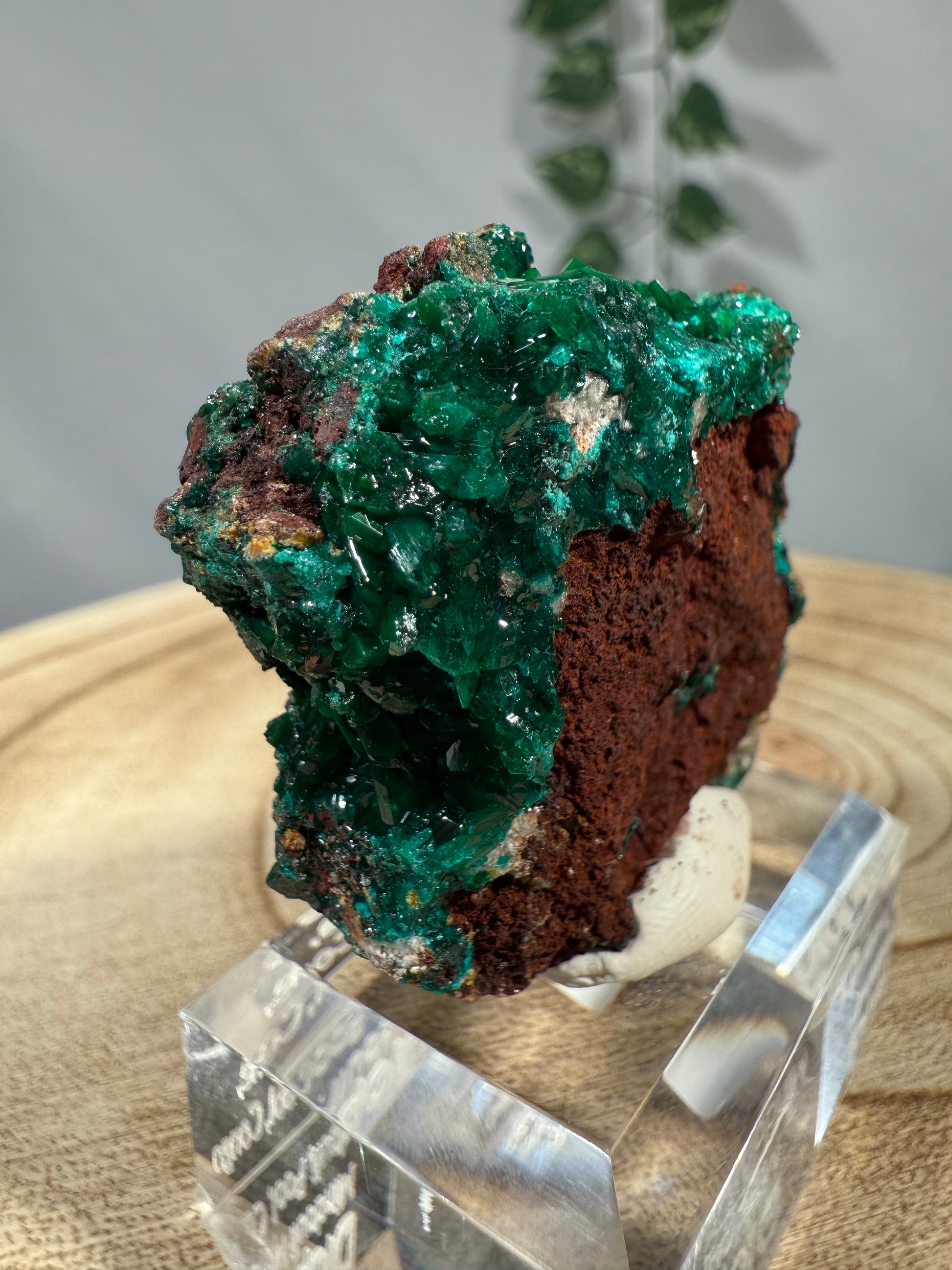 Das Mineral sitzt auf einem Acrylsockel mit Gravur und ist eine schöne Stufe.