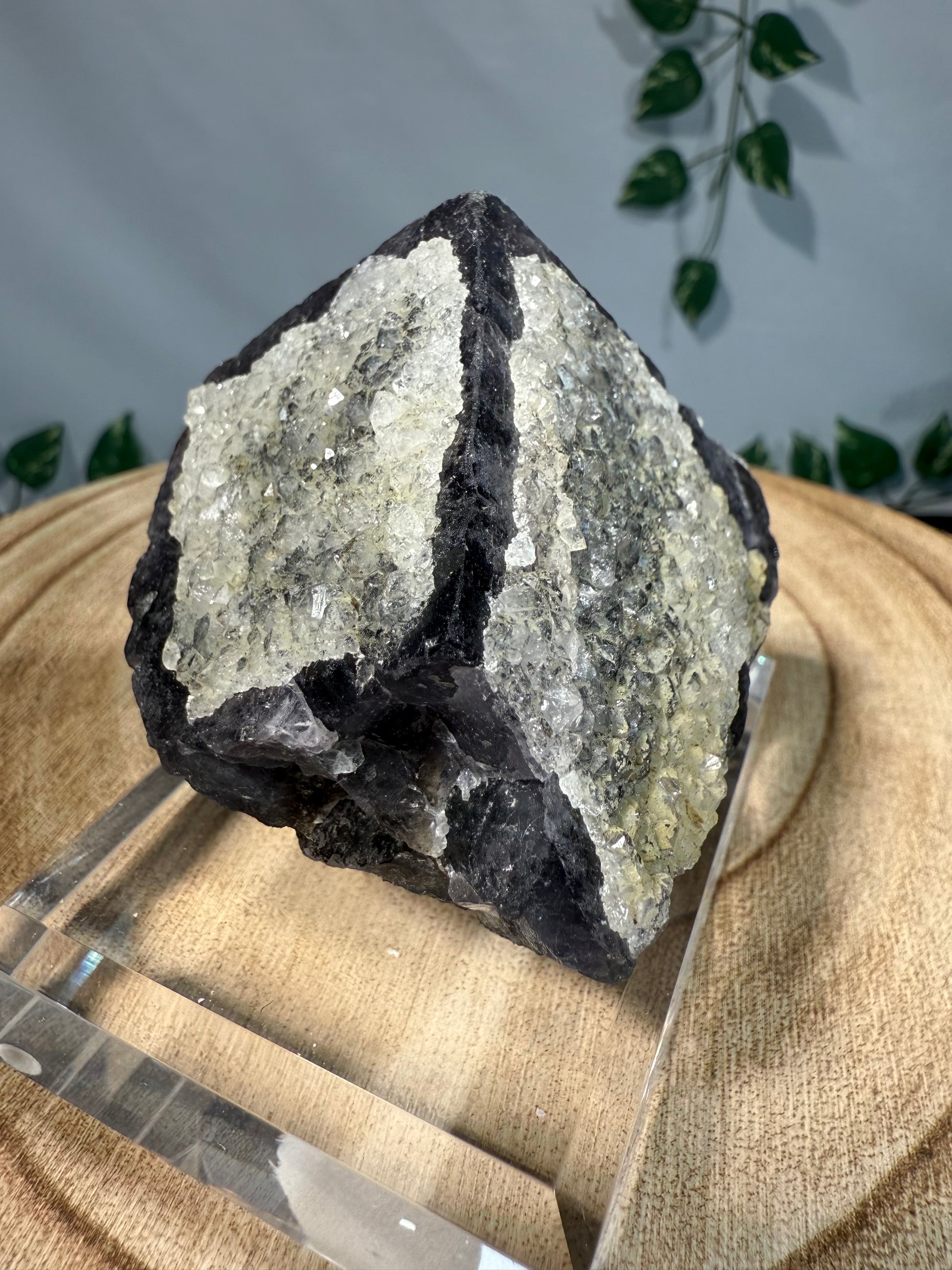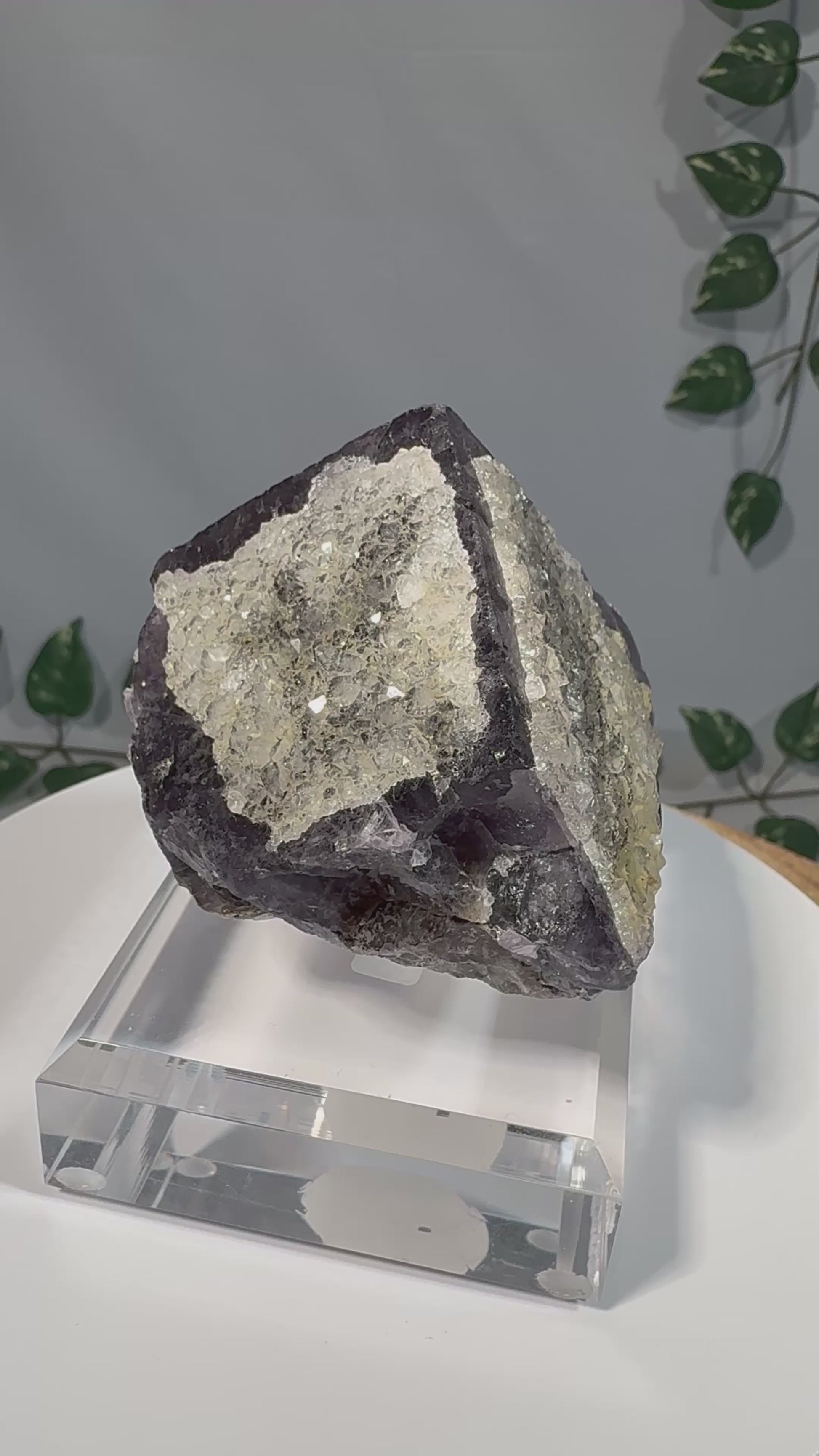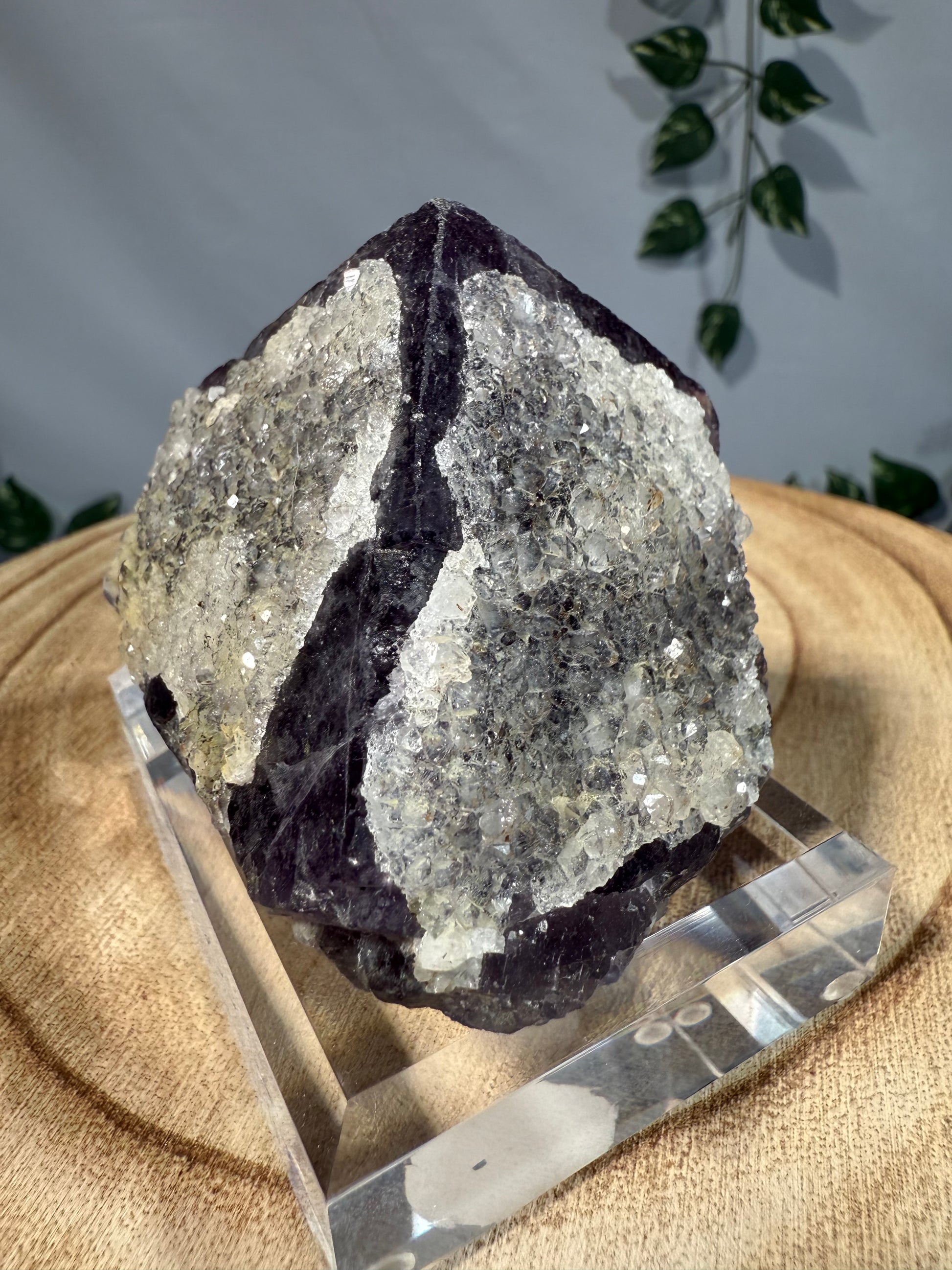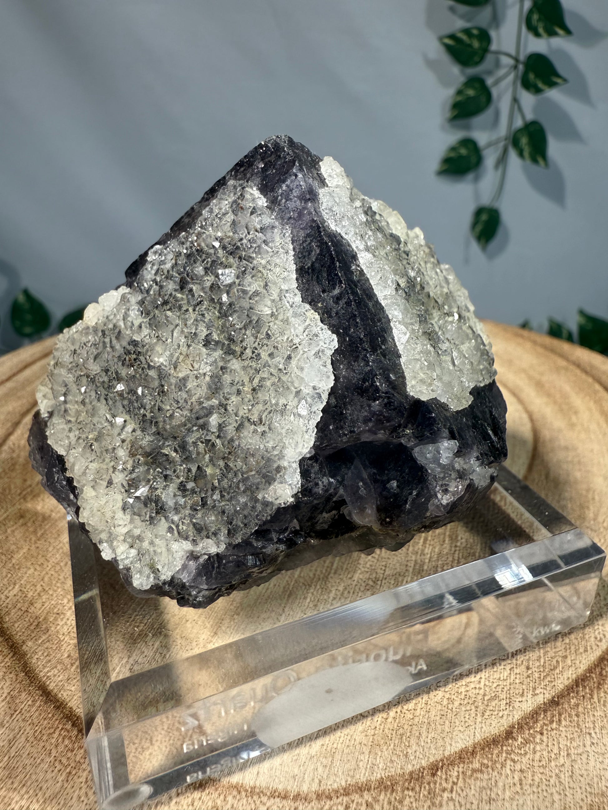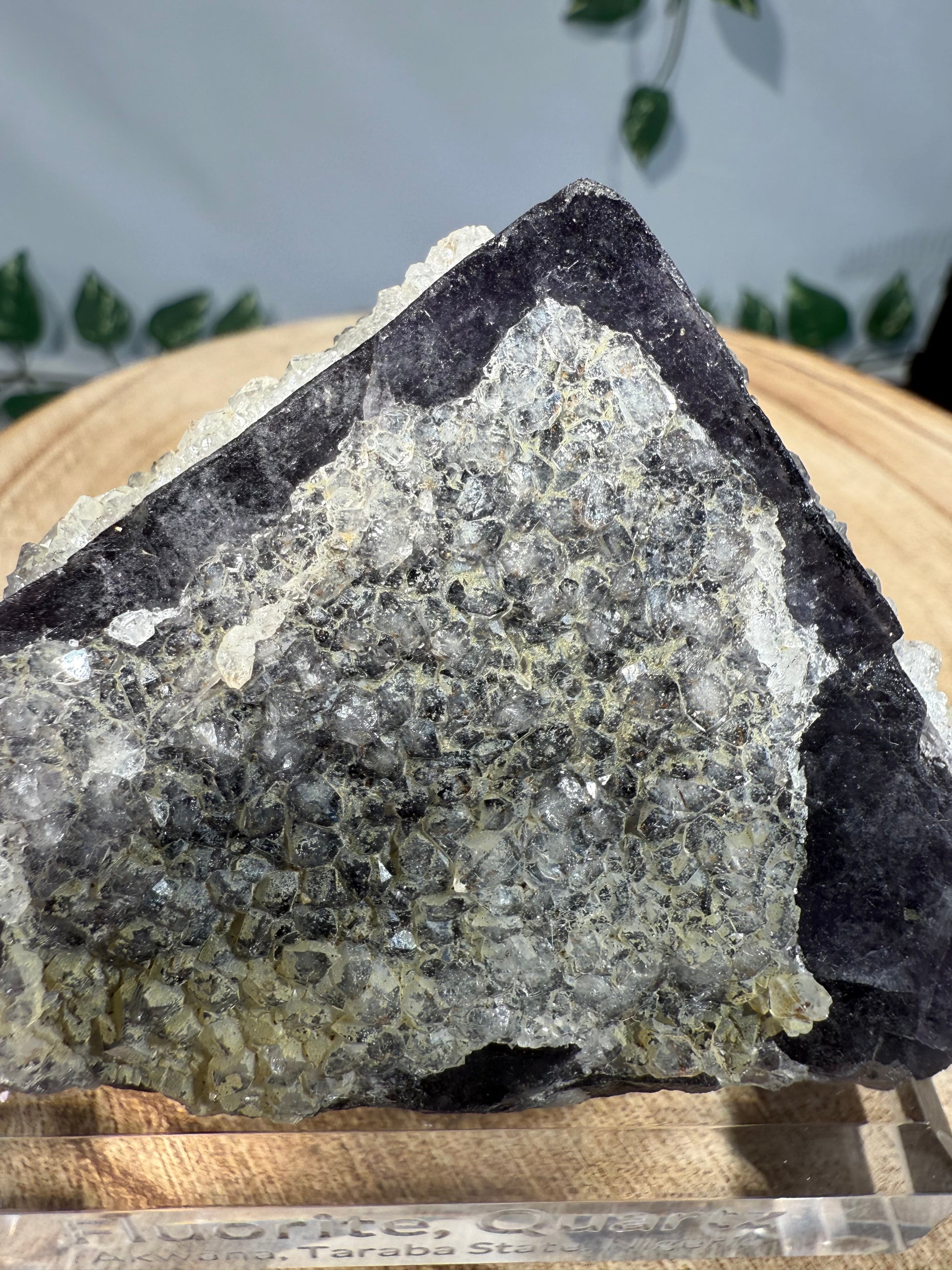 Die Quarz Kristalle haben einen tollen Glanz. Die Stufe sitzt auf einem gravierten Acrylsockel.
