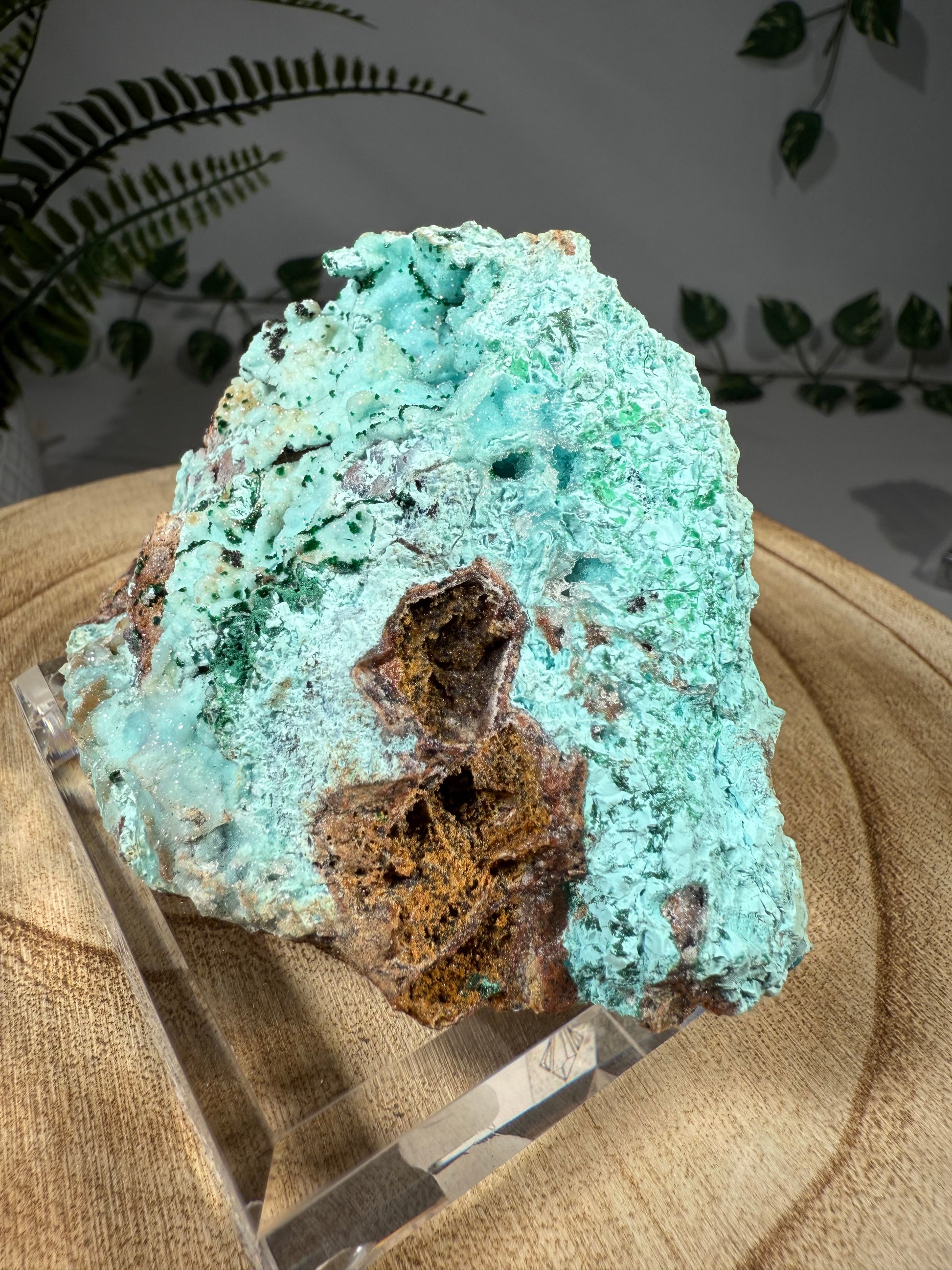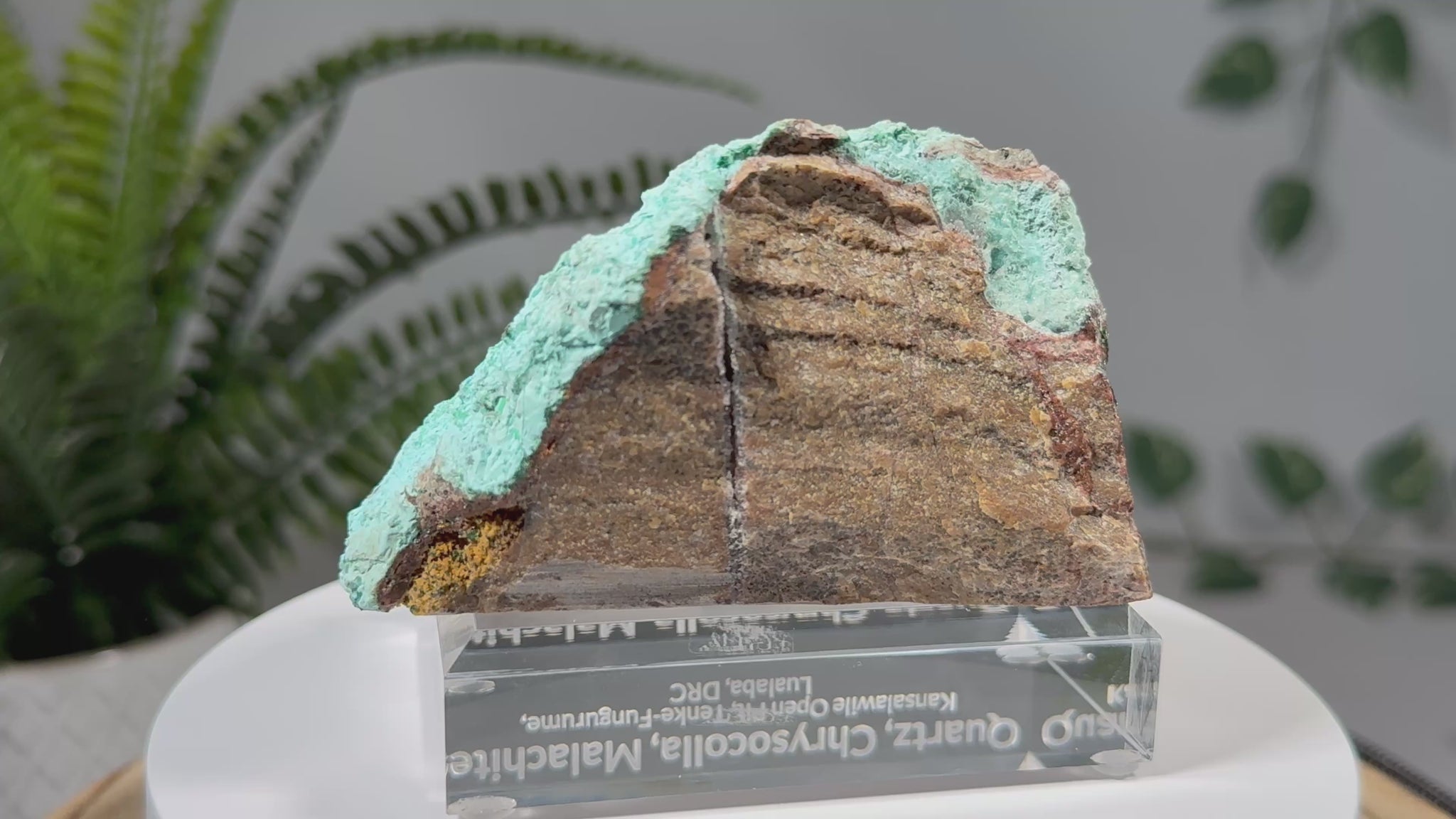 Sehr schöne Stufe mit einer tollen Farbe für jede Sammlung. Das Stück sitzt auf einem gravierten Acrylsockel.