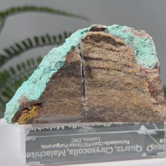 Quarz nach Chrysokoll nach Malachit von Kansalawile Open Pit, Tenke-Fungurume, Lualaba, Demokratische Republik Kongo.