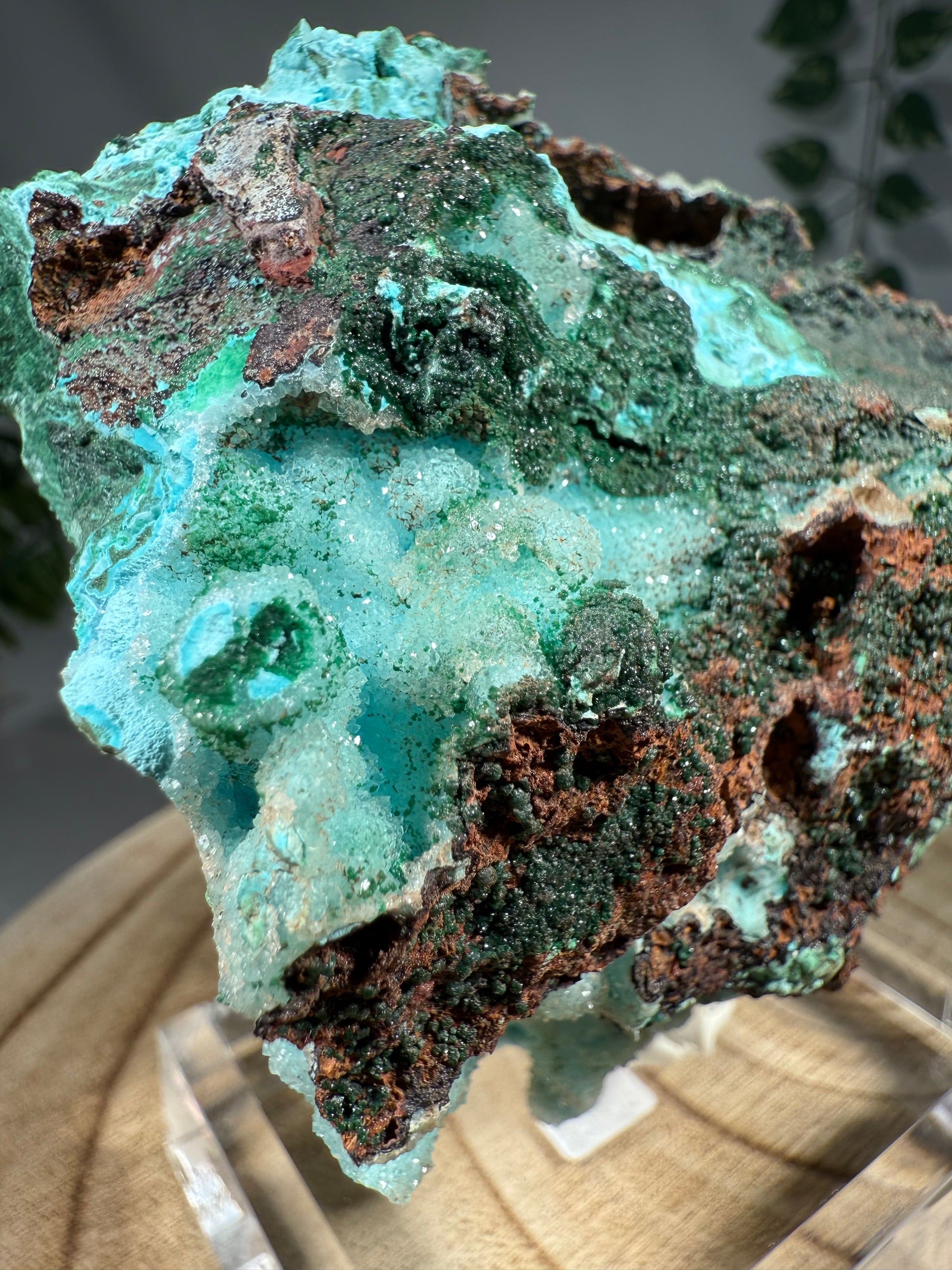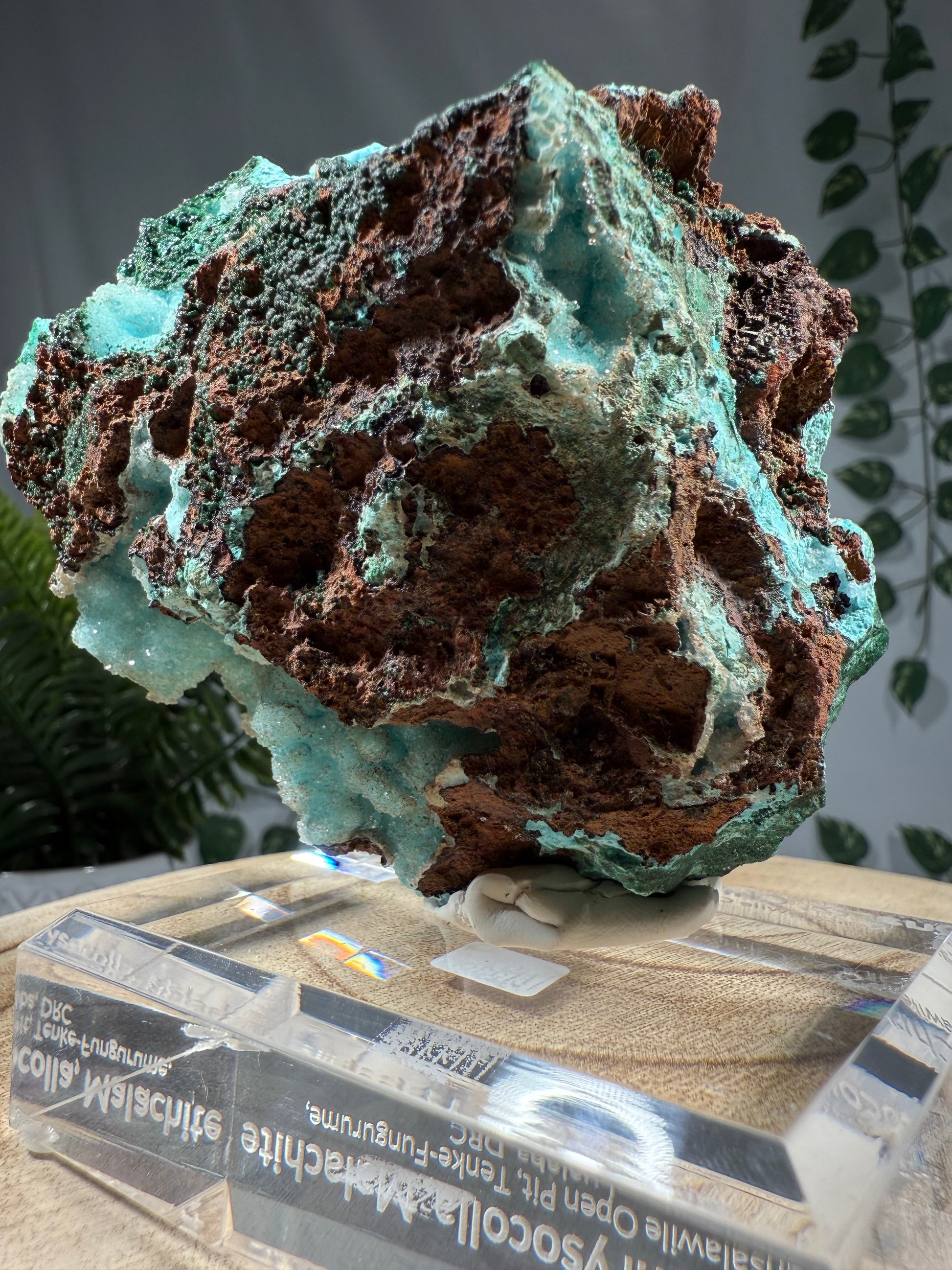 Sehr schöne Stufe mit einer tollen Farbe für jede Sammlung. Das Stück sitzt auf einem gravierten Acrylsockel.