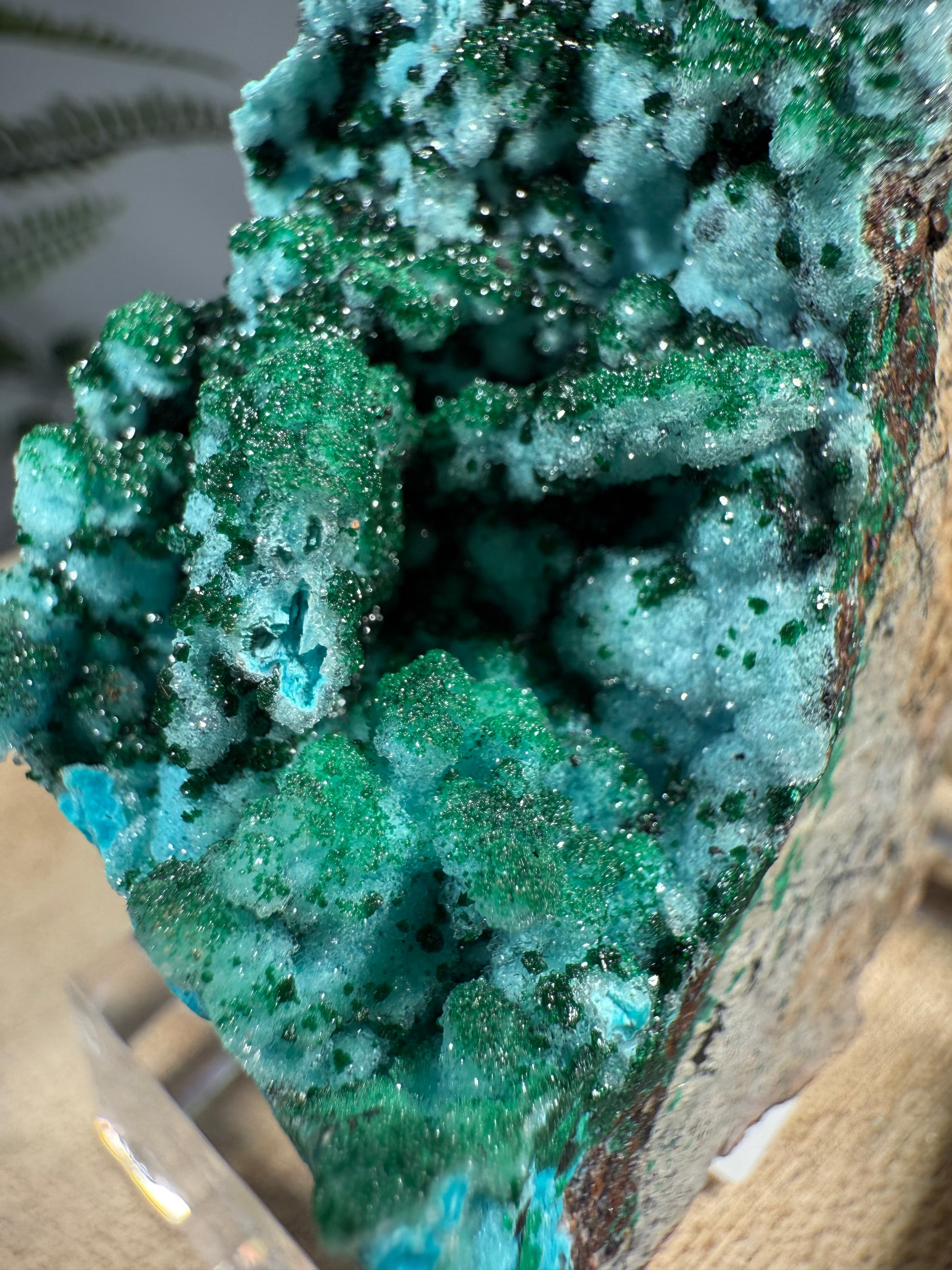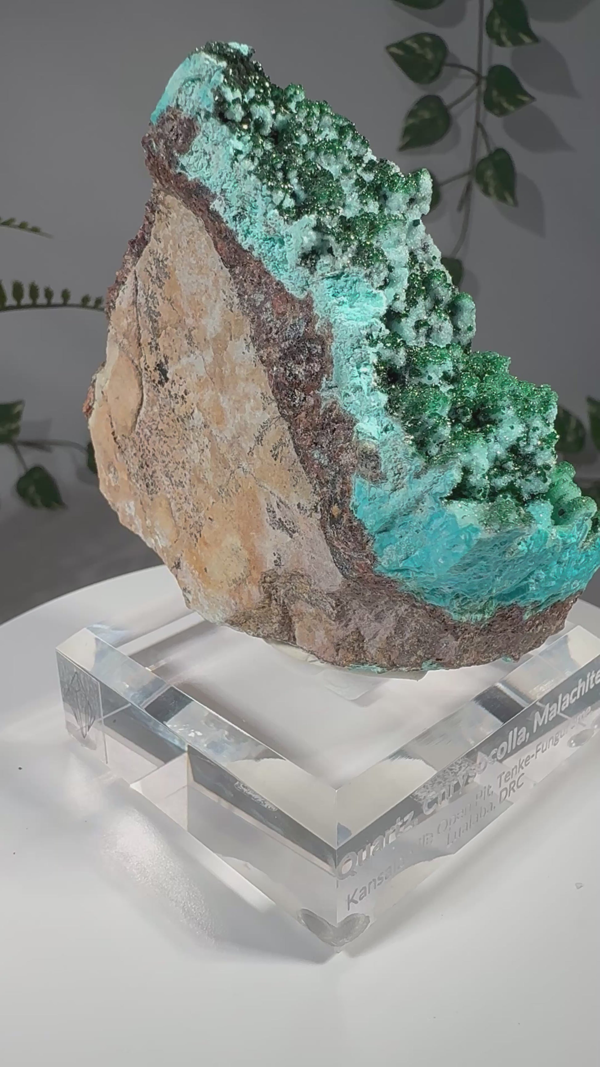 Sehr schöne Stufe mit einer tollen Farbe für jede Sammlung. Das Stück sitzt auf einem gravierten Acrylsockel.