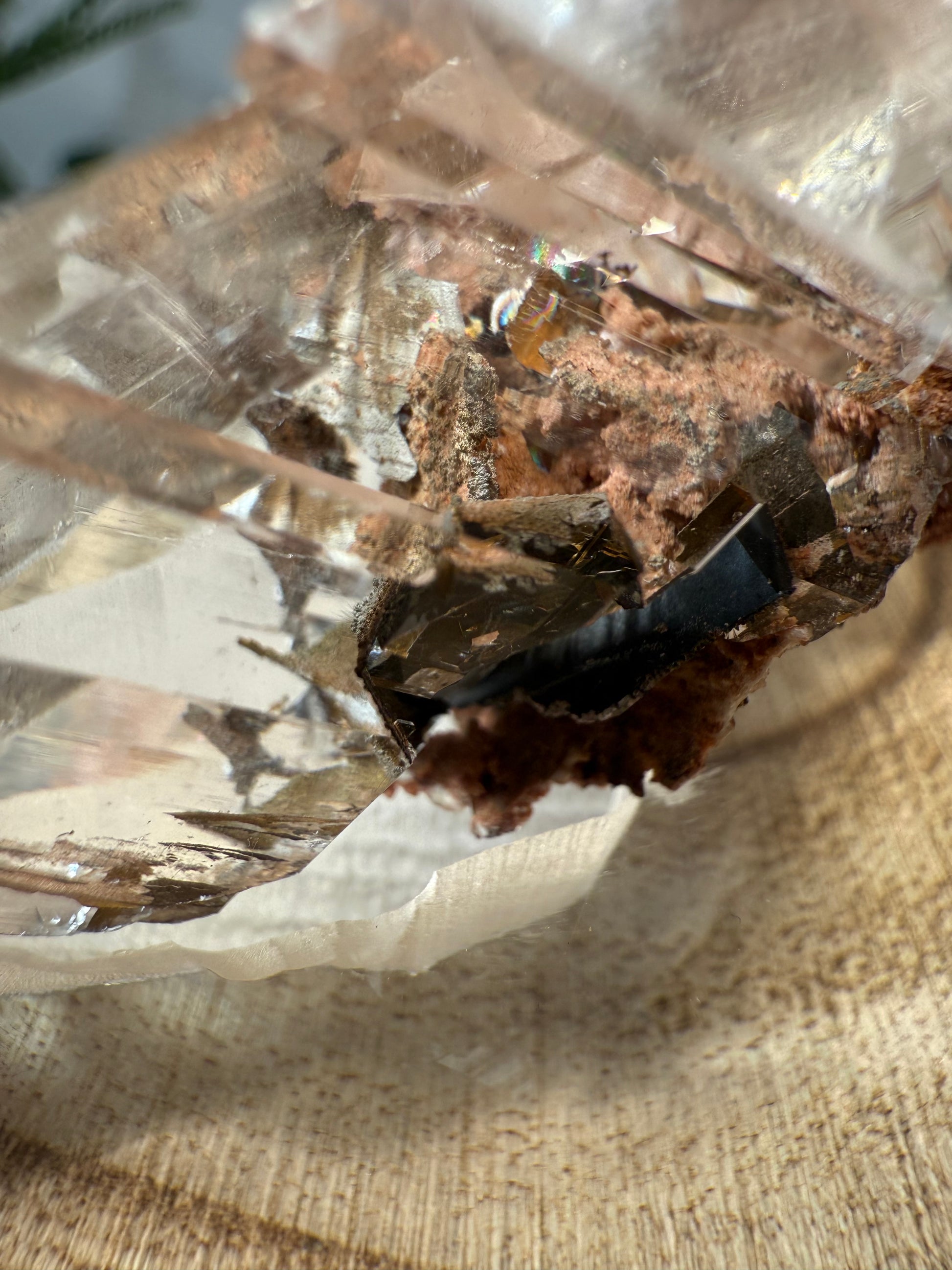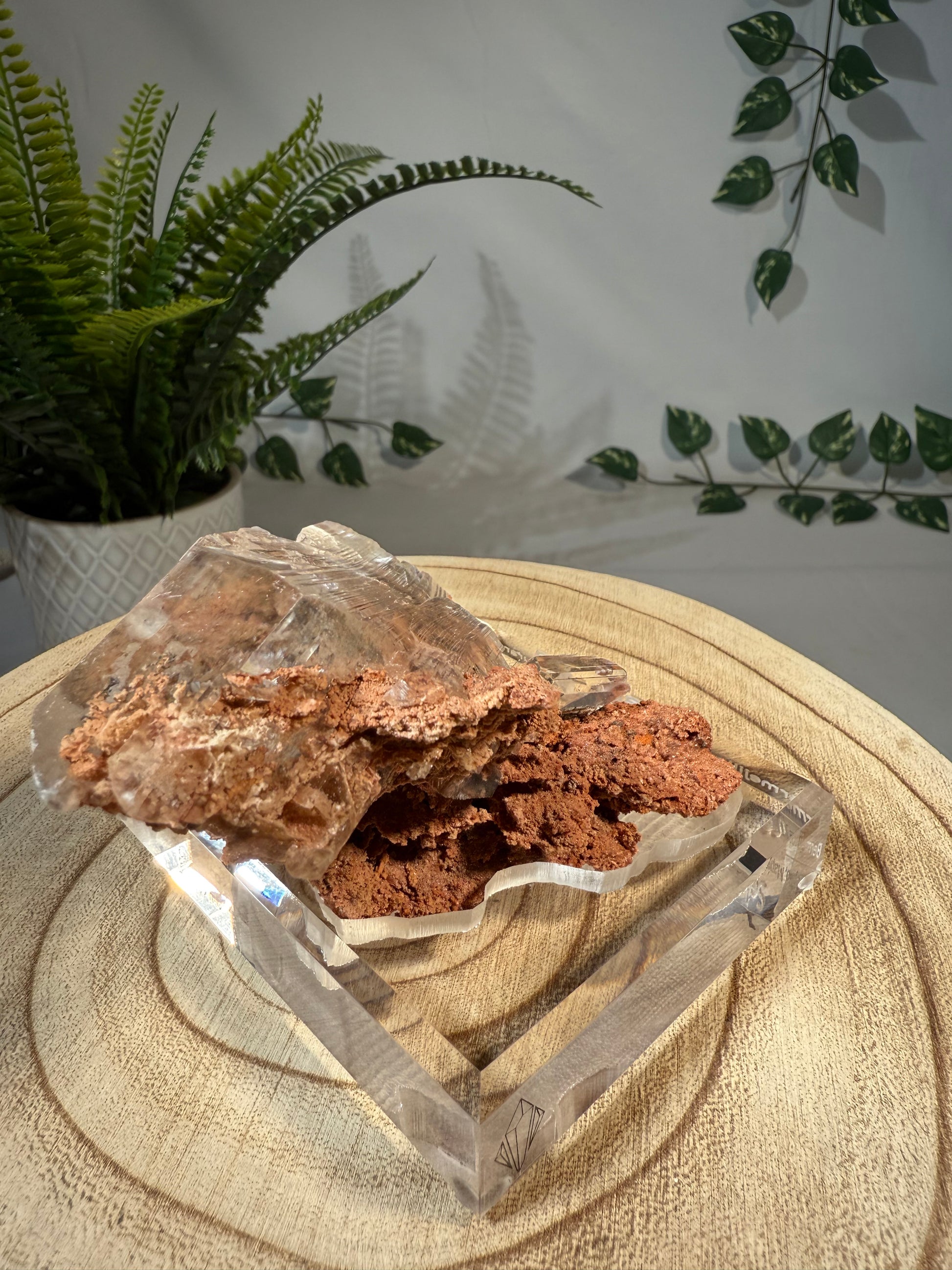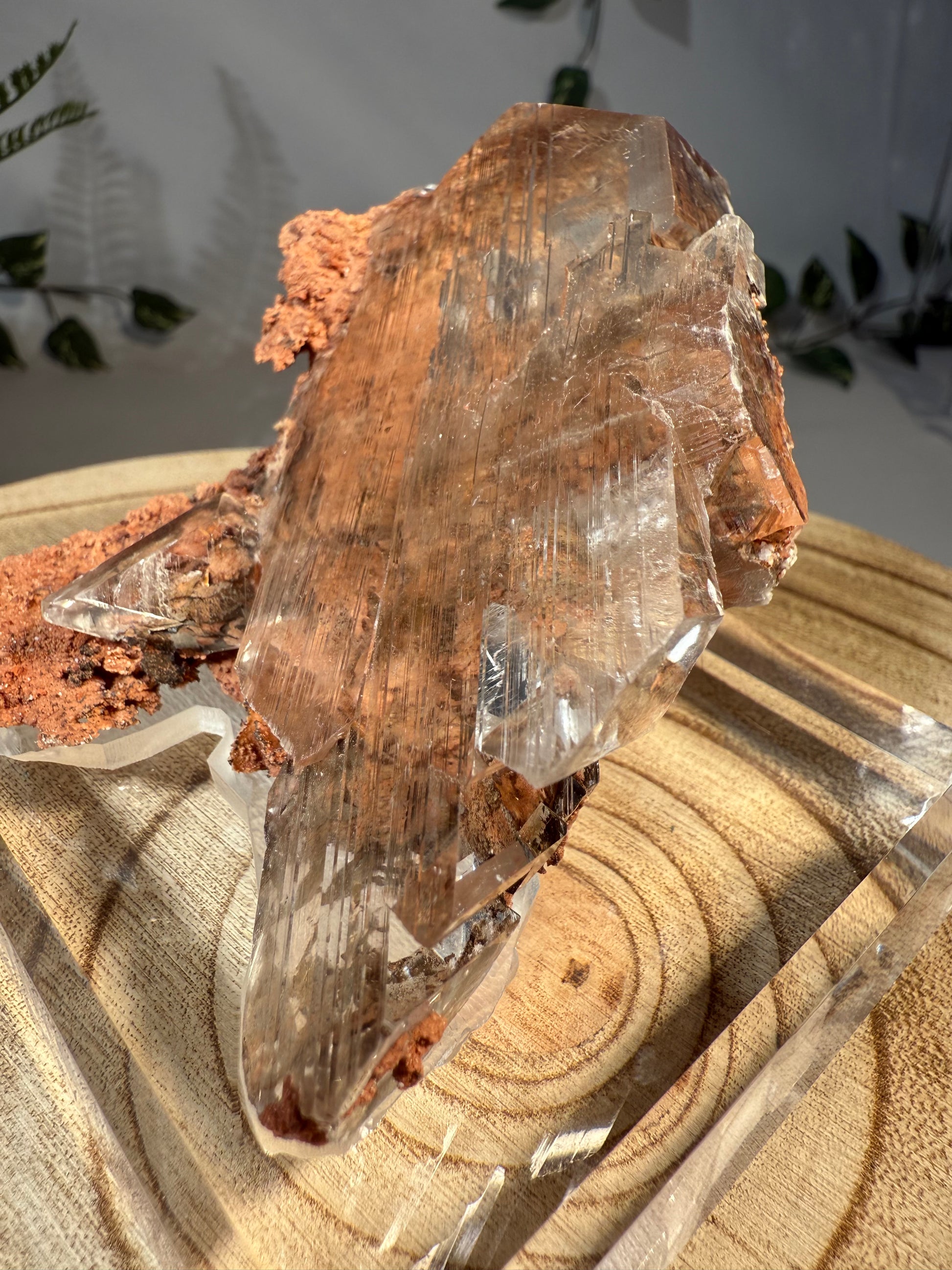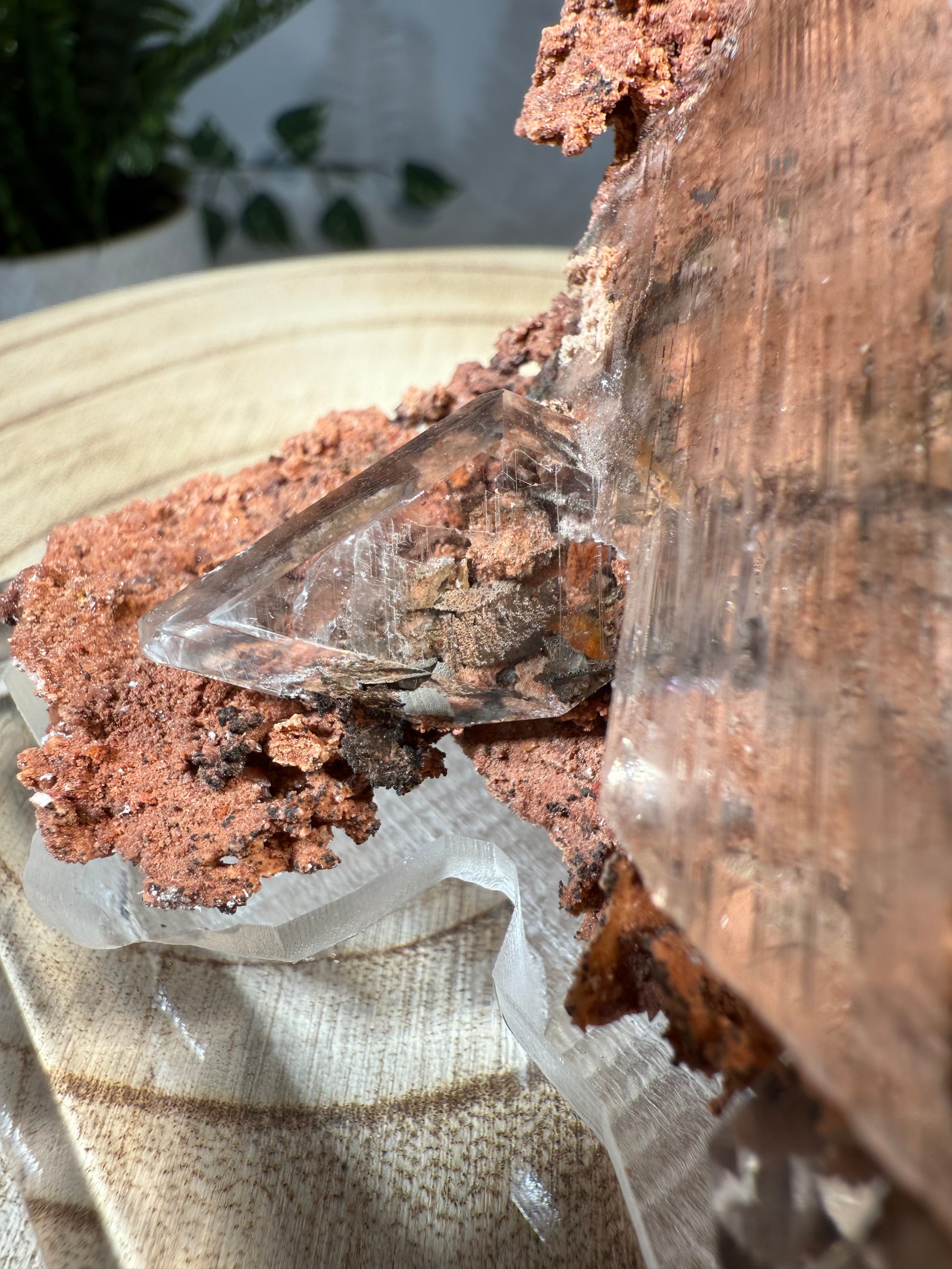 Der Selenit ist schön transparent wodurch die Inklusionen gut erkennbar sind. Ein Custom Acrylsockel mit Gravur ist im Preis mit inbegriffen. Ein Statement für jede Sammlung.