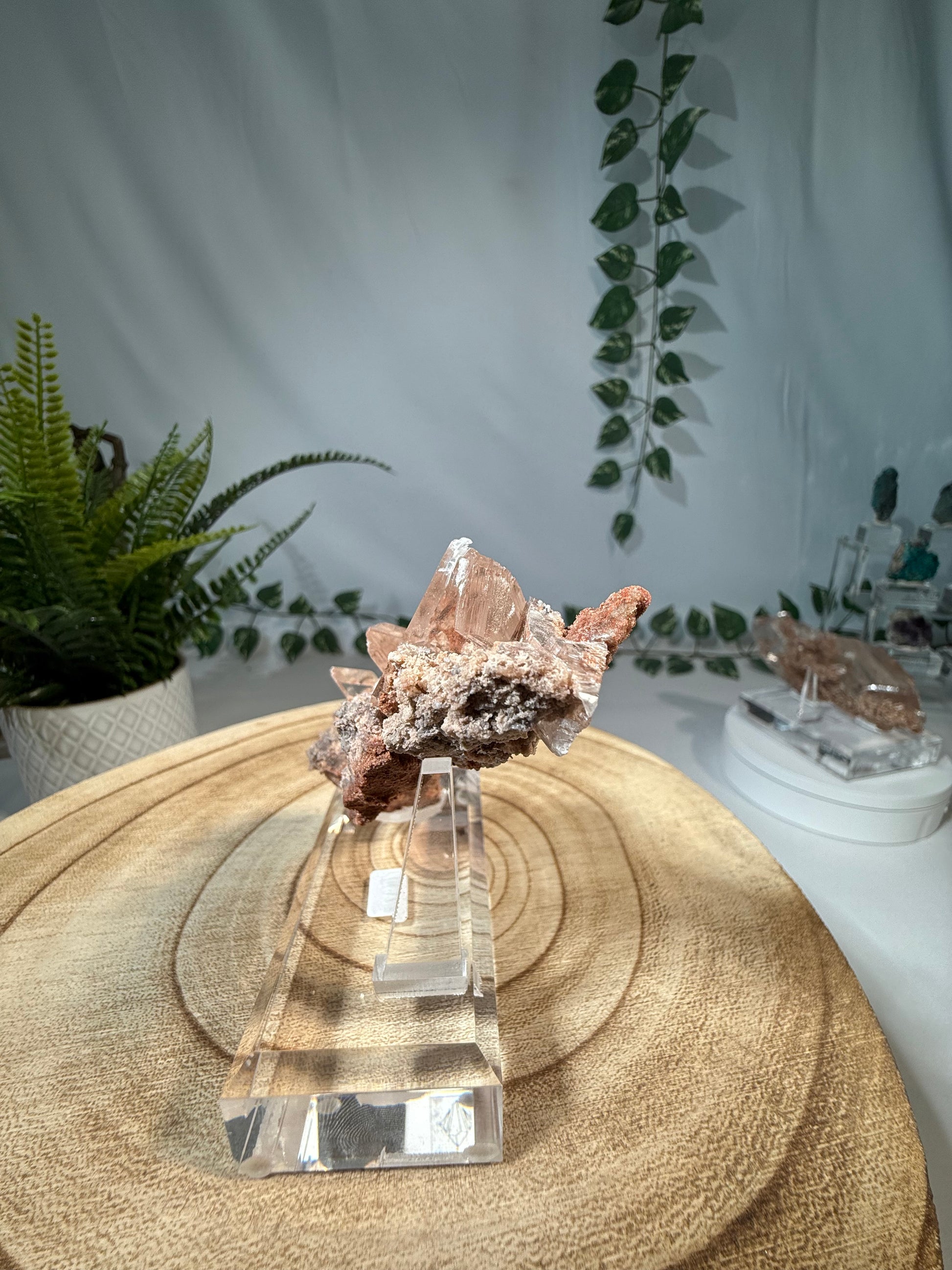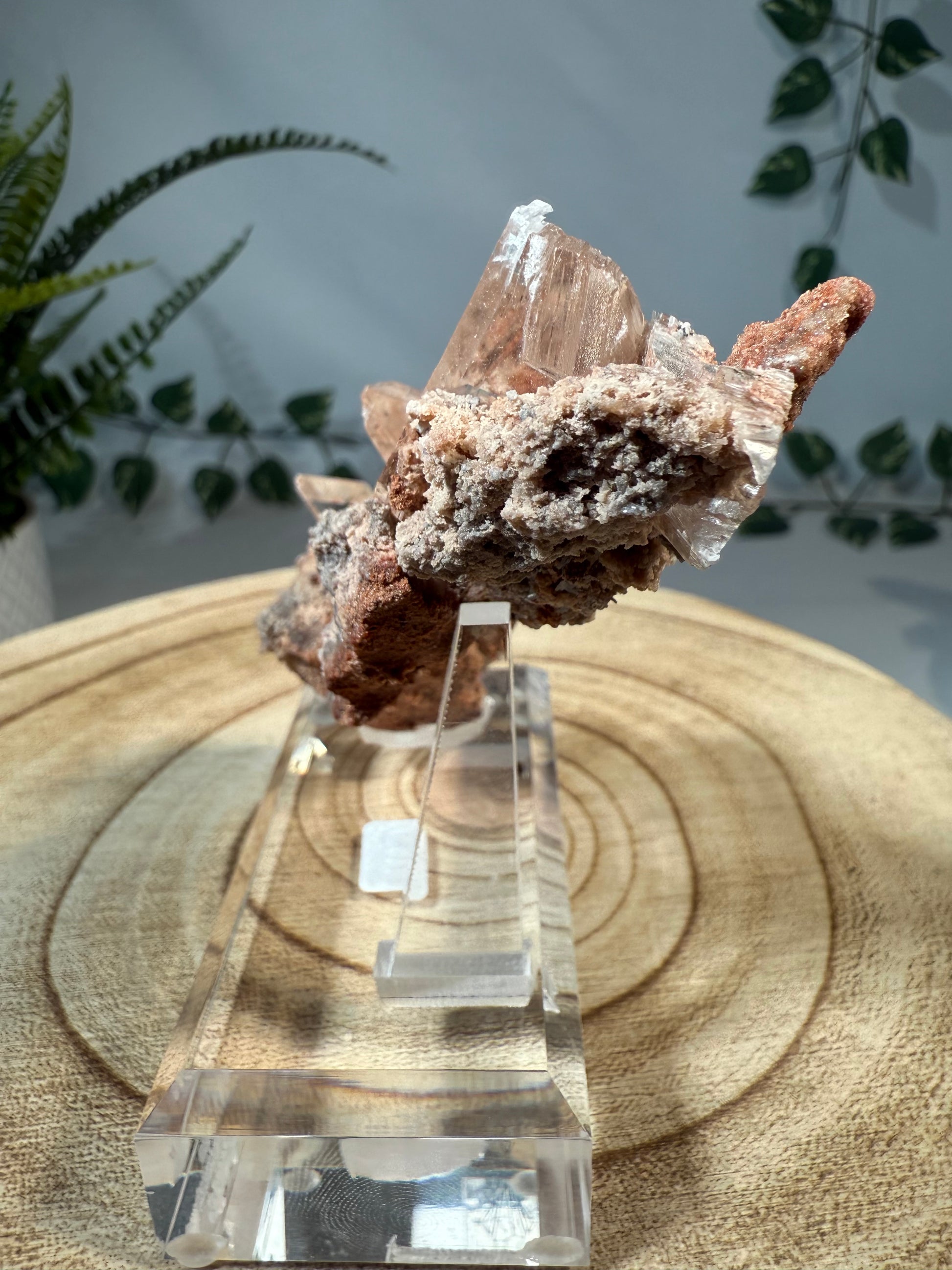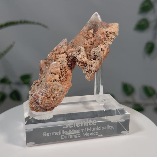 Der Selenit ist schön transparent wodurch die Inklusionen gut erkennbar sind. Ein Custom Acrylsockel mit Gravur ist im Preis mit inbegriffen. Ein Statement für jede Sammlung.