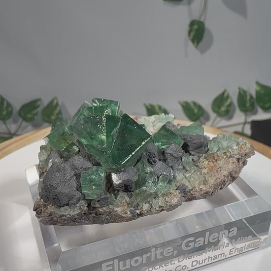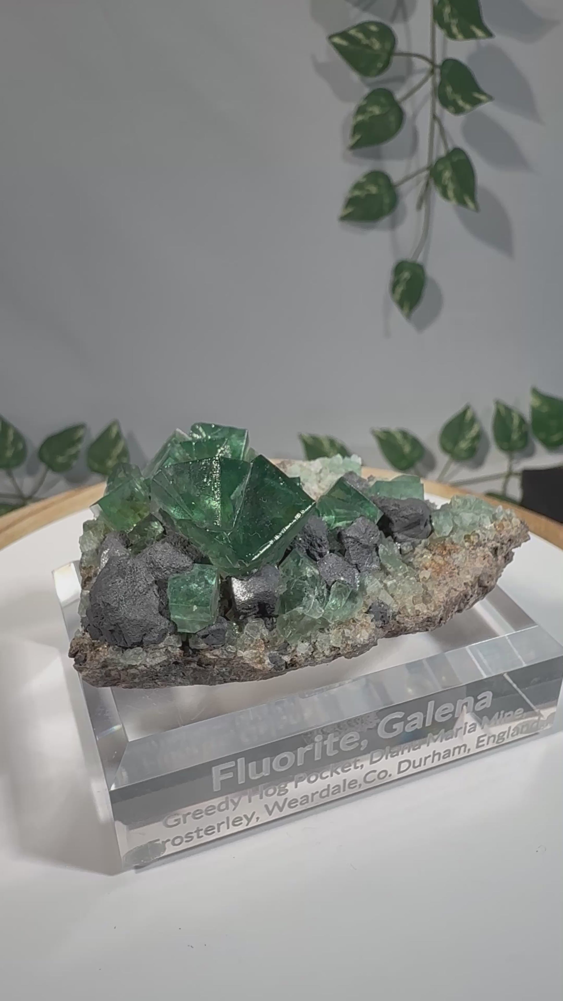 Wunderschöne Fluorit Stufe mit Galenit Kristallen aus dem Greedy Hog Pocket, Diana Maria Mine, Frosterley, Weardale, Co. Durham, England.